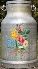 Mit Studio-Acrylfarben zweiseitig bemalte Aluminium-Milchkanne